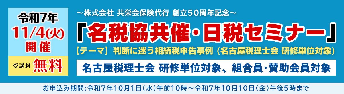 - 組合員ページ2025/09/24【11月4日開催研修会】名税協共催・日税セミナーのご案内